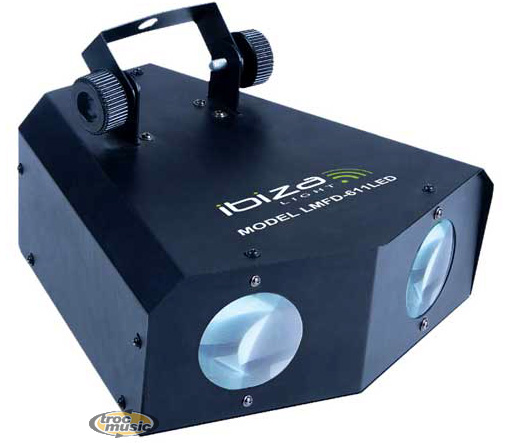 | Effet double DMX à Led. Diffuse des rayons larges et précis de couleurs rouges, verts et bleus. Rayons de haute puissance qui couvrent une large surface. Effet puissant faisant appel à une lentille d'une nouvelle technologie. Projection sur la piste de danse ou au mur. 102 LED haute luminosité de 5mm. Fonctionnement : Programme automatique, activation par le son, DMX et maître/esclave (jusqu'` 4 esclaves). |
