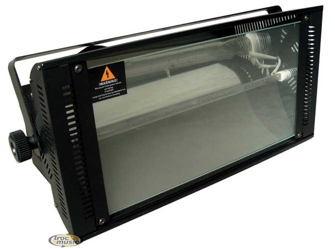 Stroboscope professionnel DMX 1500W. Forme compacte. Protocole DMX-512. 2 Canaux DMX pour la vitesse et l'intensité de lumière. Réglage de vitesse et variateur au dos de l'appareil. Variation de 0-100%. Lampe: XOP15, 1500W. Alimentation: 220-230Vac, 50Hz. Dimensions: 530 x 300 x 190mm. Poids brut: 4,4kg.