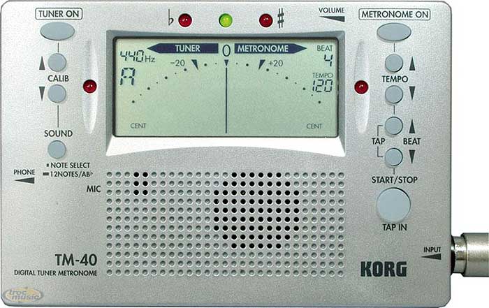 Accordeur métronome, écran LCD, prise écouteurs, chromatique. Echelle : 12 notes à tempérament égal.
