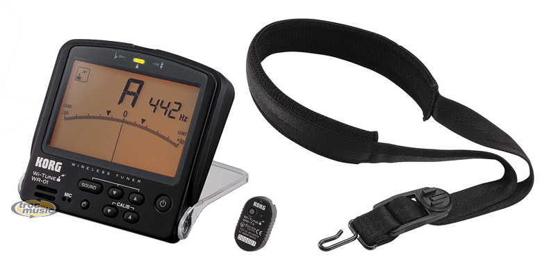 Accordeur pour saxophone. Caractéristiques identiques au WR-01 sans les pinces, mais livré avec une sangle pour accrocher le saxophone et le transmetteur de l'accordeur.