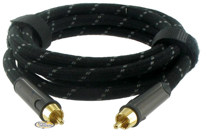 Câble RCA mâle vers RCA mâle pour Subwoofer - 3m - Cuivre OFC plaqué Argent pur à 99,9%, Connecteurs plaques Or, Gaine en PVC sans phtalates, Cordon en fibres naturelles, Housse en lin réutilisable.