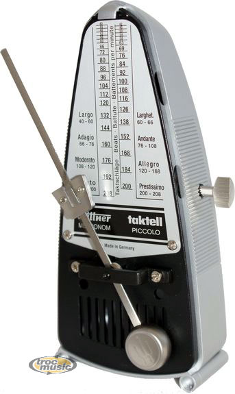 Métronome mécanique, boitier plastique, sans sonnerie. Différentes couleurs disponibles.