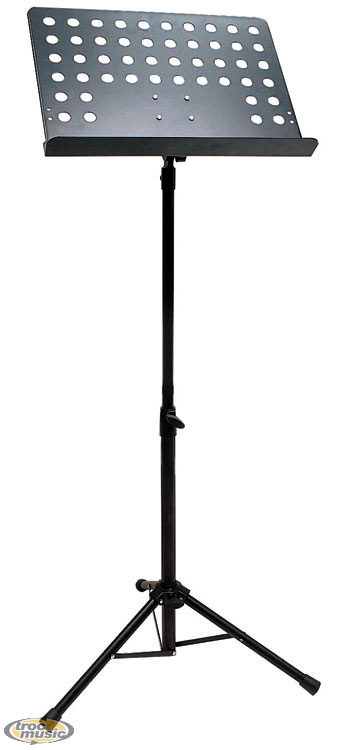 Pupitre chef d'orchestre, très stable, adapté aux partitions lourdes. Embase trépied repliable et plateau en métal perforé. Couleur noir satiné.