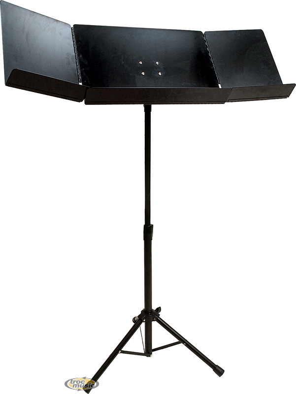 Pupitre d'orchestre avec volets pliable. Indispensable pour vos concerts, ce pupitre possède un plateau plein avec 2 volets qui se replient. Pupitre très stable, adapté aux partitions lourdes. Embase trépied repliable. Couleur noir satiné.