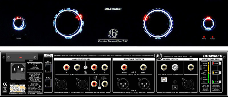 Le Drawmer HQ établit un nouveau standard dans le monde des préamplis de monitoring en combinant ce qui se fait de mieux en matière de convertisseur audio numérique et un ingénieux système de contrôle. Gestion innovante du volume via relais silencieux (att. >100 dB). Convertisseur audio haut de gamme. 4 entrées analogiques et 5 numériques avec réglage individuel du gain. Entrée USB (sans driver). Comparaison AB des sources via système de sélection intelligent. Entrée numérique jusqu'à 192 kHz/24 bits avec réduction du jitter. Entrée RIAA pour la lecture précise de vinyle. Télécommande et chaînage pour les systèmes multicanal.