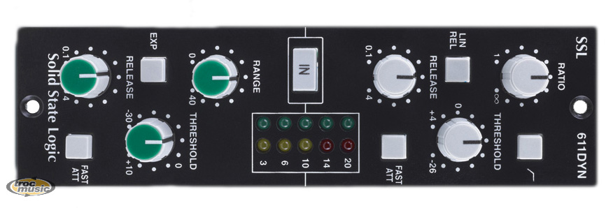 | Le nouveau module E Series Dynamics au format 500 reproduit la signature sonore légendaire d'une console incontournable du début des années 80, la SL 4000 E, utilisée dans de nombreux enregistrements de l'époque. Le module E Series Dynamics comprend un Compresseur /limiteur et un expander/gate, tous deux répliquant fidèlement les circuits et les composants clés qui définissent la sonorité de la tranche de console SL 611E Series originale. Un véritable convertisseur RMS est utilisé dans le side chain tandis que le gain est calqué sur le VCA Classe A présent dans la console originale. Circuits de la mythique série SSL 4000. Utilisation d'un VCA Classe A identique à l'original. Expander/Gate. Basé sur la tranche de console 611E . |