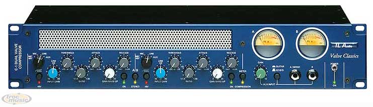 Double preampli compresseur. Bande passante 5Hz-70 kHz, réponse en fréquence 20 Hz-40 kHz.