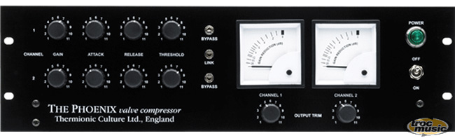 | Le Phoenix améliore le son des chants et des instruments car il reste inaudible, ajoute de la chaleur aux sons et donne de la puissance à vos solos. Il est impressionnant sur les mixages généraux et donne du '' réalisme '' aux mixages numériques. Il est également excellent pour les effets de compression. Essayez sur les batteries avec une attaque lente et un rétablissement rapide. Niveau de sortie max. : +19 dB dans 600 Ohms, + 24 dB dans 10 kOhms. Distorsion Harmonique Totale : Inférieure à 0,09 % à 1 kHz (sans compression), 0,11 % à 100 Hz. Bruit, mesure IEC pondérée : 95 dB sous le niveau max. de sortie. Impédance d'entrée : 15k ohms. Bande passante : 0/-1dB 12Hz à 60kHz. |