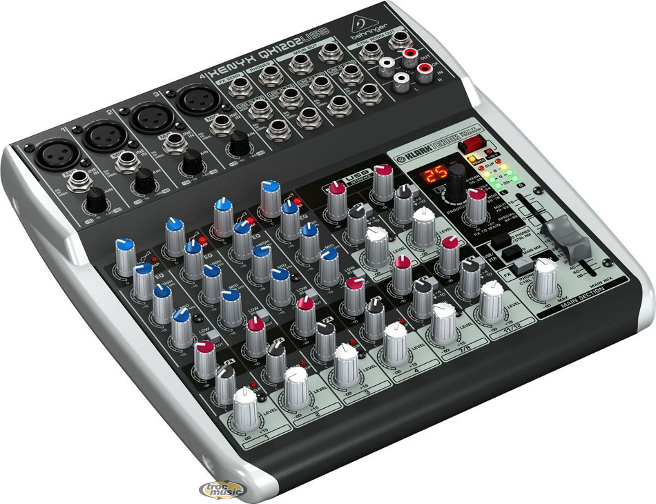 10 entrées. 2 voies micros. Interface Audio/USB. 2 Préamplis micros et compresseurs XENYX. Egaliseurs 3 bandes ''British EQ'', pour un son chaleureux. Processeur multi. -effets KLARK TEKNIK de haute qualité, avec 100 préréglages comprenant reverb, chorus, flanger, delay, pitch shifter et divers autres effets..