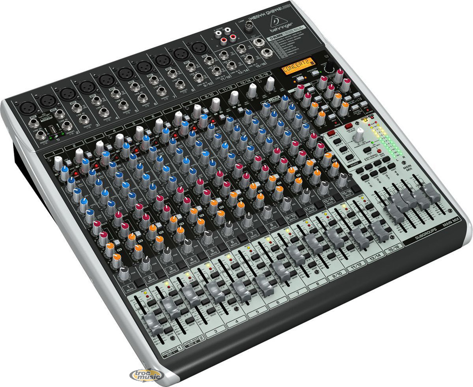 | 18 entrées. 6 voies micros. Interface Audio/USB. 6 préamplis micro, équaliseur graphique 9 bandes assignable aux bus de monitoring ou principal, circuit de détection des larsens FBQ, Effet surround stéréo 3D XPQ, Voice Canceller, 3 envois auxiliaires commutable pré/post, 2 sous-groupes assignables. 6 Préamplis micros et compresseurs XENYX. Egaliseurs 4 bandes ''British EQ'', pour un son chaleureux. Processeur multi-effets KLARK TEKNIK de haute qualité, avec 100 préréglages comprenant reverb, chorus, flanger, delay, pitch shifter et divers autres effets. Ecran LCD, double paramétrages, Tape fonction et sauvegarde des paramètres. |