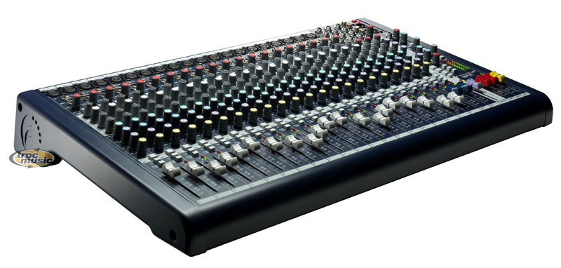 | Console MFXi 12 mono + 2 stéréo. La table de mixage MFXi s'appuie sur la qualité de la gamme originale MPM, en utilisant une construction interne sur cartes PCB montée verticalement avec serrage des potentiomètres sur le panneau frontal. La série MFXI intègre un processeur d'effet Lexicon utilisant le même processeur AudioDNA que celui présent dans le processeur Lexicon MX400. La section d'effets propose 32 presets, une fonction de mise en mémoire utilisateur, 3 contrôles de paramètres et un mode tap tempo. |