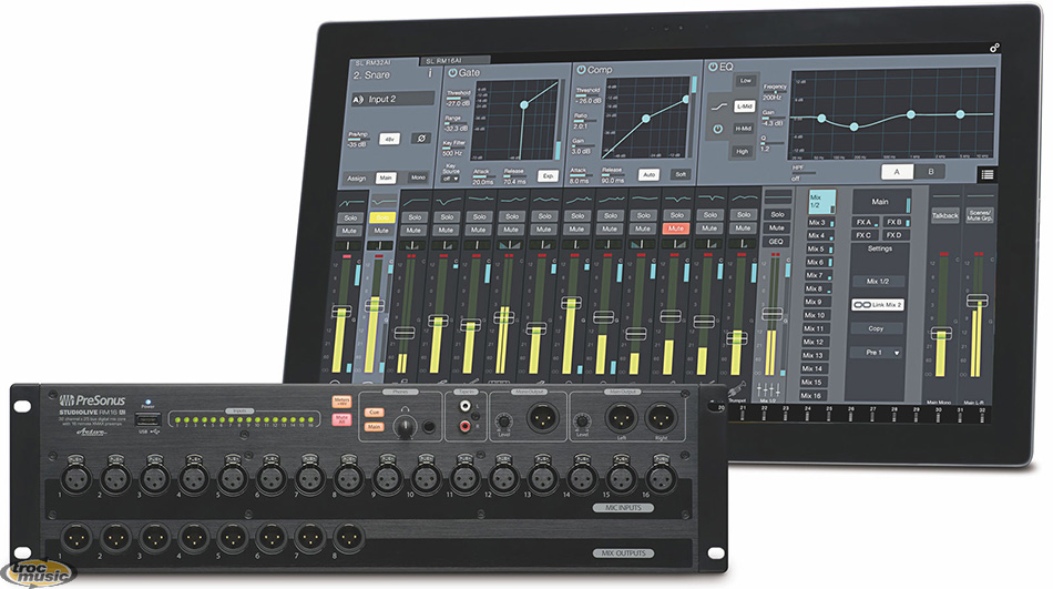 | Fonction de rappel des réglages de scène ''Total recall''. 16 préamplis micro XMAX Class A. Alimentation fantôme +48V indépendante. 8 sorties XLR façade. 3 sorties XLR gauche, centre, droit . 25 bus (16 aux, 3 bus de sortie LCR, 4 effets internes, 2 bus solo). Traitement HD, jusqu'à 96kHz. Logiciel de mixage live et studio UC-Surface multi-plateforme. |