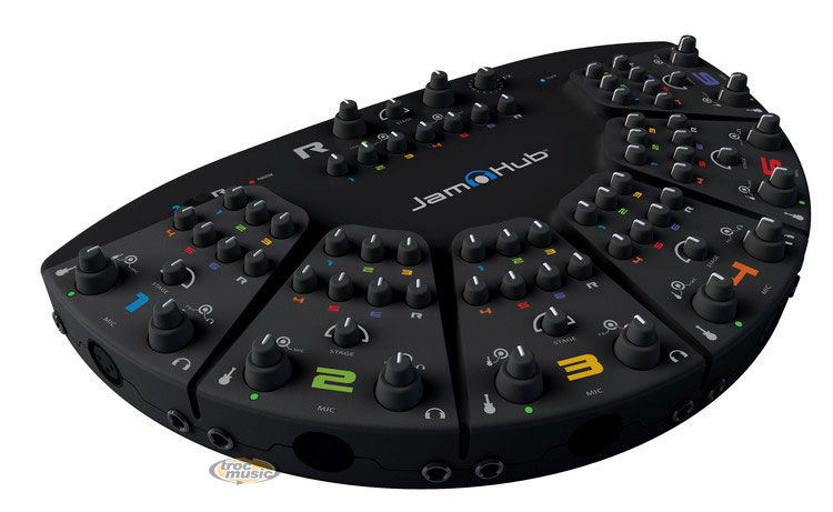 Le JamHub vous permet de jouer avec votre groupe n'importe ou, n'importe quand et ce dans un silence parfait. Chaque musicien choisit une section et y branche son instrument, micro et casque. Puis, il cree son propre mix.