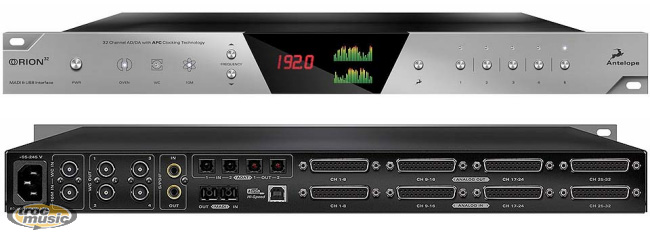 | L'Orion 32 est un convertisseur audio AD/DA de 32 canaux doté d'une horloge maîtresse à la fois compatible MADI et USB. Une bonne synchronisation est assurée par le système d'Antelope : 64-bit Acoustically Focused Clocking (AFC) technology. 32 canaux d'E/S MADI par fibre optique, en 96kHz. 32 canaux d'E/S audio numérique en 192kHz via la connectique USB haut débit. Protocole ADAT/16 canaux, qui permet d'utiliser 2 x 16 canaux en entrée/sortie. 1 entrée et 1 sortie numériques MADI fibre optique. 4 entrées et 4 sorties analogiques D-SUB 25. 2 entrées et 2 sorties numériques ADAT fibre optique. 1 entrée et 1 sortie numériques S/PDIF. |