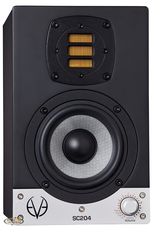 | Moniteur actif 2 voies avec woofer 8''. Le SC208 est le plus gros moniteur deux voies de la gamme EVE Audio. Comme pour chacun de nos moniteurs, nous avons consacré l'essentiel de la phase de son développement au confort d'utilisation et au détail de la restitution sonore. Grâce â son woofer 8'' SilverCone, à sa directivité contrôlée et â sa puissance de sortie, le SC208 s'adapte â un trés grand nombre d'applications, y compris comme moniteur de référence en moyenne cabine. Le SC208 se distingue par des performances qui ont tout d'un grand moniteur, notamment la reproduction détaillée du grave qui vous permet de poser une oreille critique sur vos enregistrements. Le woofer 8'' SilverCone fabriqué en respect de nos spécifications descend jusqu'à 36 Hz.. |