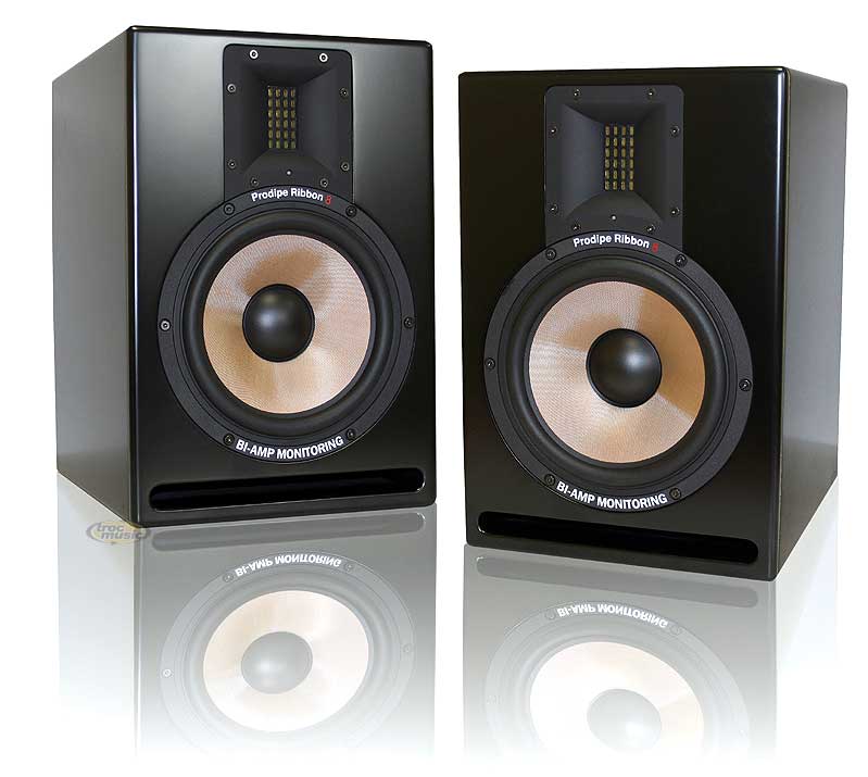 Paire d'enceintes monitoring à ruban 8'', 140 watts dynamiques bi-amplifiées.