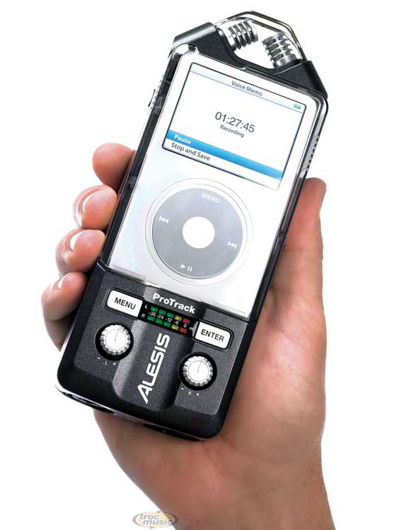 Enregistreur numérique portable pour iPod. Système d'enregistrement nomade avec micro à condensateurs en configuration XY. Connexions XLR et Jack 6,35 mm.