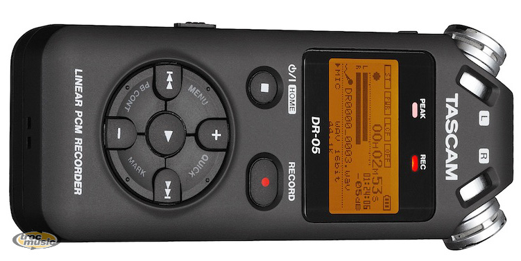 | Le DR-05 est un enregistreur stéréo portable offrant une très bonne qualité d'enregistrement, au format MP3 ou WAV - avec mode 'haute résolution' 24 bits/96 kHz - sur carte micro SD ou micro SDHC. Le couple de micros AB intégré encaisse un niveau de pression sonore maximal de 125 dB SPL. Le DR-05 permet aussi de connecter un micro stéréo séparé, ou une source de signal au niveau ligne, via son entrée stéréo sur mini-jack. |