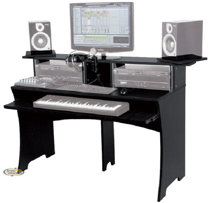 | Les stations de travail Glorious pour home-studio ont été conçues pour offrir une ergonomie de travail optimisée. 2 baies 19'' 4U et une surface horizontale accueillent l'équipement, tandis que le plan rétractable peut recevoir un clavier-maitre ou plusieurs machines. 2 Supports orientables sont prévues pour les enceintes. Déclinées en 3 couleurs (bois, noir et blanc), ces stations de travail s'intégreront sans mal dans tous les intérieurs. Dimensions : 1560 x 985 x 580 mm. Poids : 43kg. |