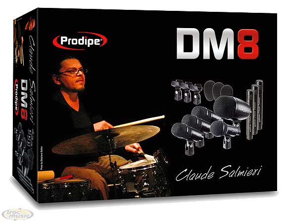 Set 8 microphones batterie signés Claude Salmieri: 1 micro grosse caisse, 3 micros toms et percussions, 1 micro caisse claire, 3 overheads avec 3 bonnettes, 3 pinces et valise de transport.