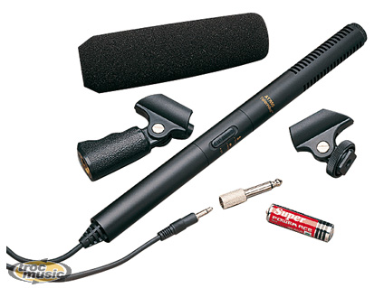 Microphone canon à condensateur unidirectionnel, spécifiquement conçu pour les caméras vidéo. Capsule : Condensateur. Normal : Cardioïde. Télé : Supercardioïde. Réponse en fréquence : 70 - 18 000 Hz. Normal : -56 dBm, 1 kHz à 1 Pa. Télé : -45 dBm, 1 kHz à 1 Pa. Normal : 1 000 ohms +/- 30%. Télé : 2 200 ohms +/- 30%.