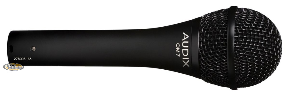 Conçu durant les années 90 lorsque les concerts Rock avaient un niveau sonore extrêmement élevé sur scène, l'OM7 a obtenu la réputation dans le milieu de l'audio pro de micro acceptant '' un gain ultime sans larsens ''. L'OM7 a niveau de sortie exceptionnellement faible par rapport aux autres micros dynamiques (8 à 10dB de moins) car il intègre un atténuateur pour une utilisation sur une plage dynamique élevée. Spécifications. Directivité : Hypercardioïde. Réponse en fréquence : 45Hz - 19 kHz. Intérrupteur : Non. Impédance : 150 ohms. Sensibilité : 9 mV.
