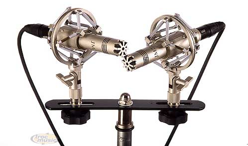 Pack JM27 : paire de micros condensateurs avec valise de transport, bonnettes, suspensions et barre de couple pour prise stéréo.