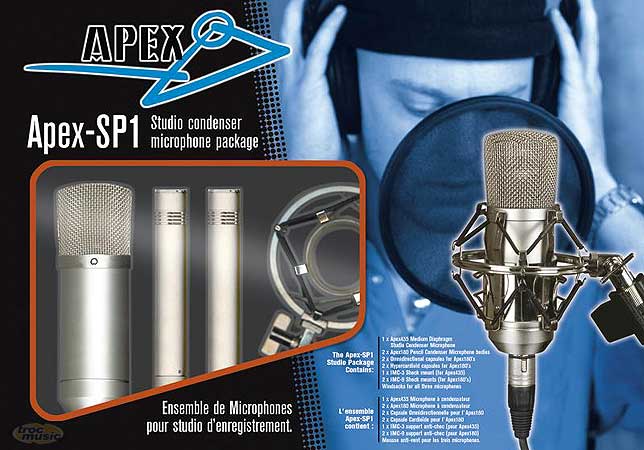 Kit micros : 1 micro électrostatique Apex435 + 2 microphones-crayon électrostatiques Apex180, suspensions et bonnettes.