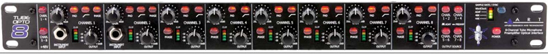 Préampli 8 canaux/8 préamplis micro classe A à lampe/8canaux I/O numériques ADAT/8 sorties jack symétrique + Alimentation fantôme +48v.