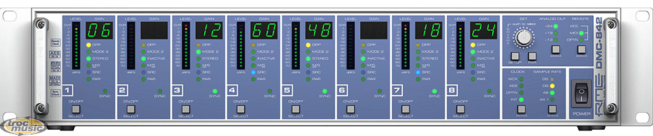 Préampli huit micro 24-Bit/192kHz. Convertisseur vers formats ADAT, AES/EBU, analogique et MADI.