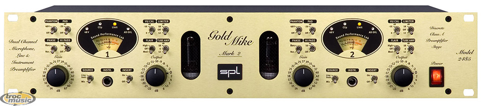 Préamp hybride transistors/lampes, réglage d'intensité du niveau de lampe. Alimentation Phantom +48V, inverseur de phase, atténuateur et coupe bas 50 Hz.