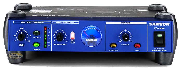 Préampli à lampe pour micro et instrument, pourvu d'une alimentation fantôme 48V, d'un inverseur de phase et d'un contrôle de distortion harmonique.
