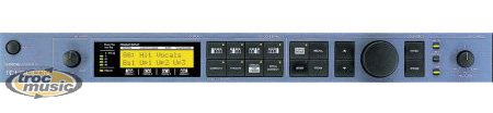 | La voice-box compléte. PREAMPLI/CORRECTEUR/REVERBE. Applications. Prise de son mono et enregistrement sur support numérique via S/PDIF (conversion 24 bits à 44.1 et 48 kHz). Tranche de console comprenant tous les outils nécessaires aux prises de voix (égaliseur 3 bandes et coupe-bas, compresseur/gate, correcteur d'intonation). Préampli micro de scène avec effets (delay, reverbe) contrôlable. Harmoniseur entièrement contrôlable par clavier midi ou selon des gammes automatiques. Epaississeur de voix. |