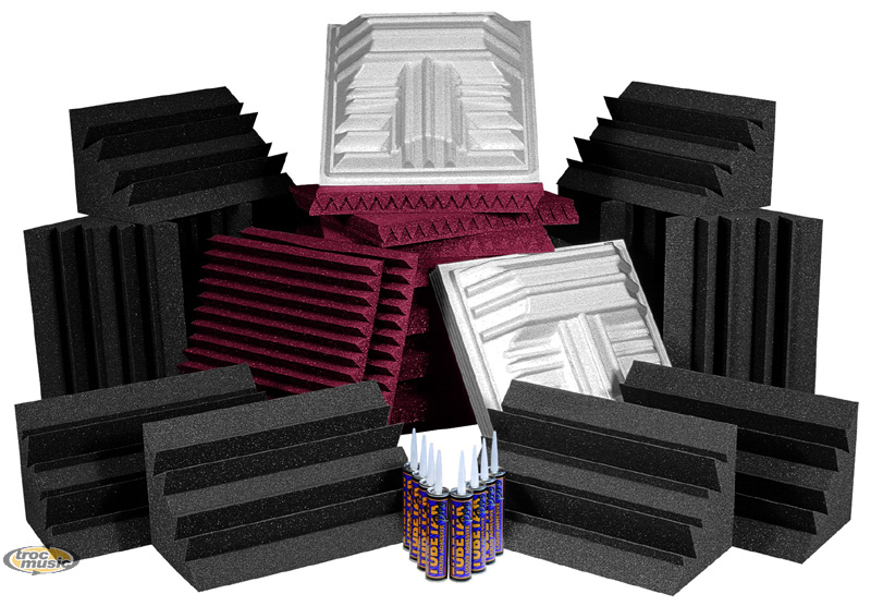 Le pack Pro Plus est conçu principalement pour des pièces de 25 à 40mâ², comprend. 36 Studiofoam Wedges 60x60x5. 12 LENRD Bass Traps. 8 T'Fusor 3D sound Diffusors. 8 Tubes de colle TubeTak Pro Adhésives.