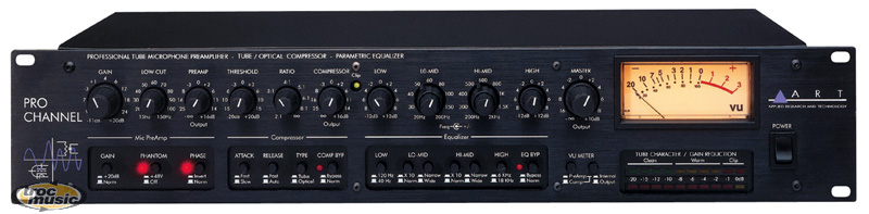 Préampli/Compresseur/EQ à lampe professionnel. L'ART PRO CHANNEL est un préampli micro à lampe professionel. Ce nouveau préampli mono canal est né d'une fusion entre le PRO MPA, le PRO VLA et le TUBE EQ. Les 3 modules ( préampli, compression et Eq ) sont indépendants.