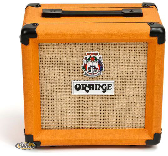 Baffle Micro Terror. Construction: multiplis. Puissance max : 20W. Haut-parleur: 1x 8'' Orange. Impédance: 8 ohms. Dimensions: 260mm x 255mm x 135mm. Poids: 3,5 kg. Finition: Orange Tolex avec grille classique crème.