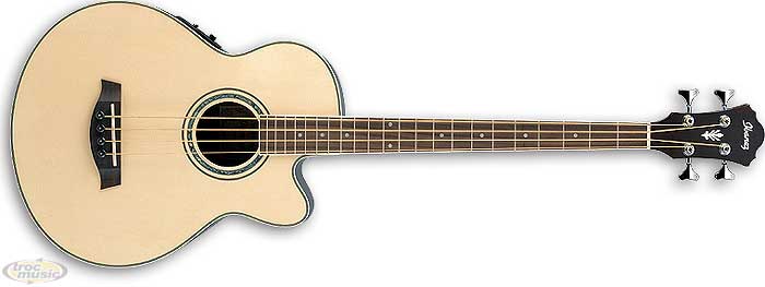 Basse acoustique naturel. Table épicéa, fond, éclisses et manche acajou, touche et chevalet palissandre, micro Fishman Sonicore, préampli SST avec accordeur.