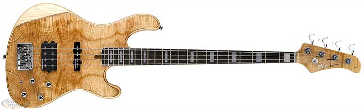 Basse 4 cordes naturelle. Corps frêne, table érable figuré, manche érable, touche palissandre. Micros: 1 simple et 1 double Seymour Duncan.