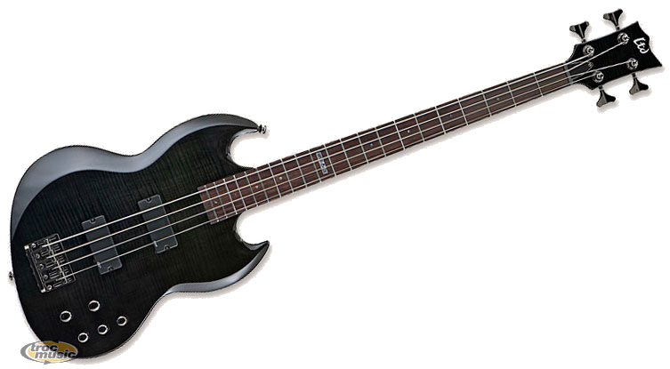Corps en basswood. Table en érable flammé. Manche 21 cases en érable. Touche en palissandre, frettes Jumbo. Repères par ''points'' nacrés incrustés avec nom du modèle à la 12ème case. 1 micro ESP SB4 et 1 micro ESP SD4. Egalisation active. Accastillage nickel noir.