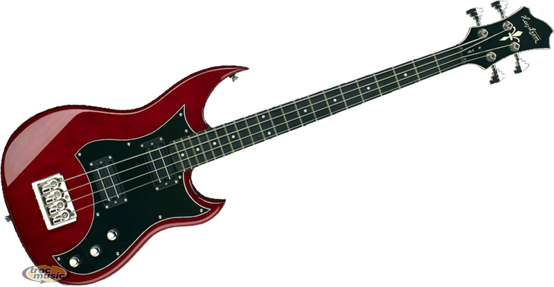 | Basse 4 cordes finition See Thru Wild Cherry Transparent ou Black. Corps acajou. Manche vissé en érable, 6 inserts métalliques. Touche en bois composite, repères DOTS Hagstrom. Tige de réglage H-Expander. Mécaniques Hagstrom à bain d'huile. Diapason 781 mm. 2 Micros doubles Hagstrom Rail. Electronique : Master volume, Blend, Master tonalité. Chevalet : Cordier Hagstrom FCS B4D. |
