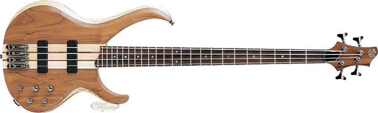 Basse 4 cordes naturelle satinée. 2 Micros Bartolini MK2. Corps noyer/frêne léger, table érable flammé, manche conducteur BTB4 5 pièces érable/bubinga, 24 cases, touche palissandre.