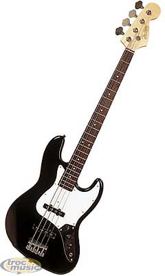 Basse Atlanta JB noire. Corps aulne, forme Jazz, finition laquée. Manche érable. Touche palissandre 21 cases. 2 Micros type Jazz.