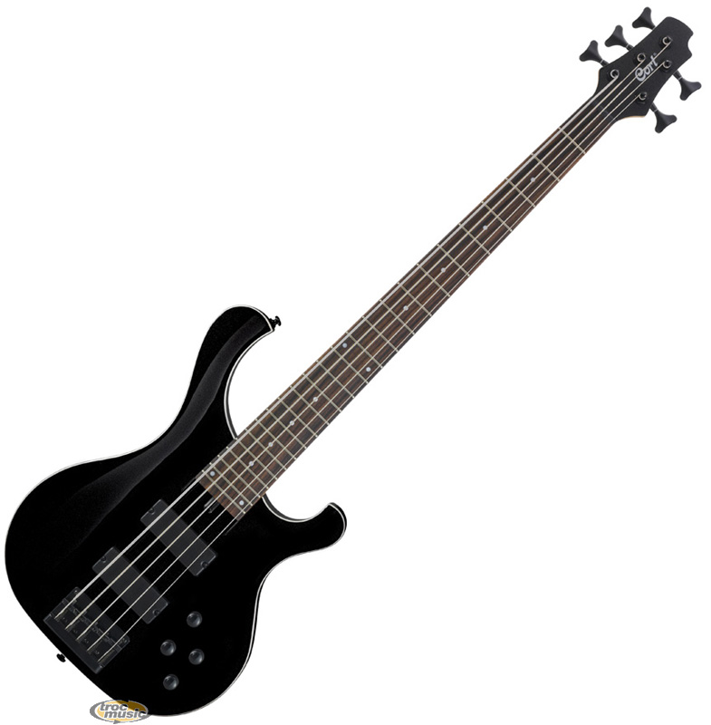 Guitare basse électrique CORT de la série T - modèle 5 cordes. Diapason 35''. Corps agathis avec binding blanc. Manche érable. Micros doubles et EQ active 2 bandes. Accastillage noir.