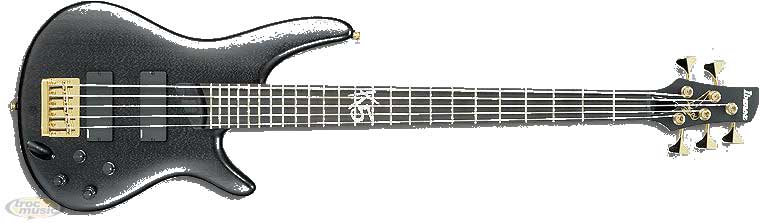 Basse 5 cordes Signature Fieldy, noir transparent. Micros ADX5-B + ADX5-N, équaliseur Vari-Mid III. Corps acajou, manche K5 érable et bubinga, touche palissandre avec incrustations K5.