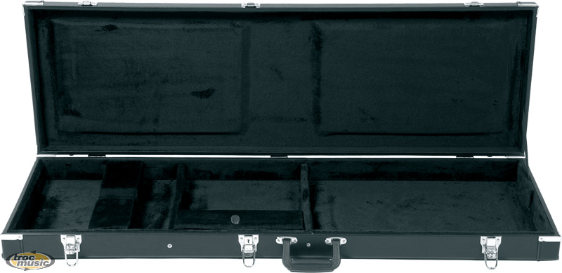 Véritable écrin pour votre basse électrique (format standard), l'étui bois rectangulaire offre une protection optimale parant à tous les chocs de la vie quotidienne. Recouvert simili cuir, casier de rangement, intérieur peluche noire. Finition noire.