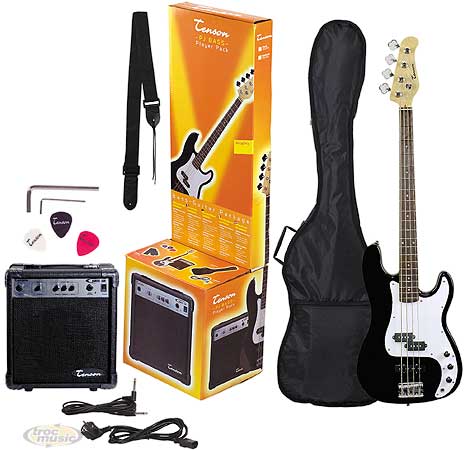 Kit complet: Basse: corps tilleul, manche érable, touche palissandre, 3 micros simple bobinage. Ampli 15 W + housse et accessoires.