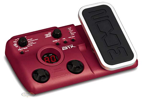 Pédalier multi-effets pour basse avec pédale d'expression intégrée, 46 effets programmables, 8 modules d'effets, 80 patchs au total, 8 effets simultanés.