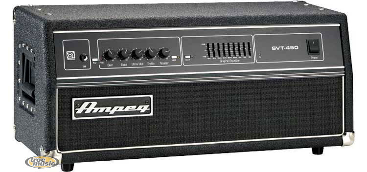 Tête d'ampli pour basse Solid-State 350 watts 4 ohms, gain d'entrée avec LED indicatrice d'écrêtage, EQ 3 bandes, fonction pour booster les médiums, EQ graphique 9 bandes.