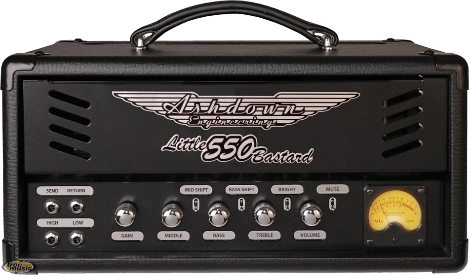 | Pour les bassistes adeptes du verre, du feu et de la haute tension, Ashdown à spécialement conçu une impressionnante gamme d'amplis à lampes qui va de la tête au stack.. Pré-ampli à lampes, 1 x 12AX7 1 x 12AU avec entrées haute et basse impédance. Contrôle du gain, du master et eq. 3 bandes. Sorties : haut-parleur 2 x Speakon mini 4 O et DI symétrique. Boucle d'effets . |
