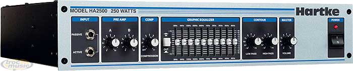 Tête d'ampli pour basse 250 W, rack 2u, 2 pré-amplis, EQ 10 bandes.